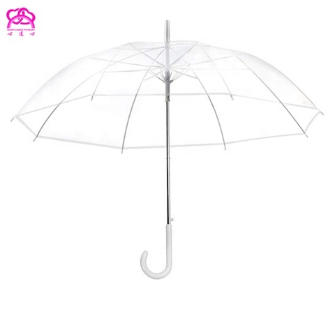 Benutzer definierter Logo-Druck PVC Klar Günstige Transparente Regenschirm, PVC PE Automatisch Offen Gerade Sonne Regen Kuppel Klar Transparenter Regenschirm